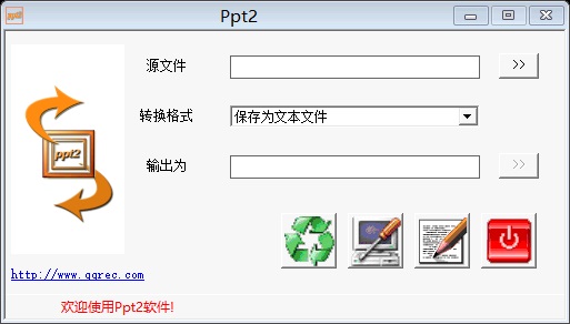Ppt2是一款用于将powerpoint文件转换为其它格式文件的工具,可以将ppt、pptx文件转换为文本文件、word文档、批量图片、网页文件。